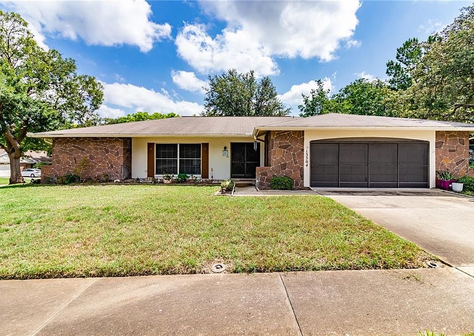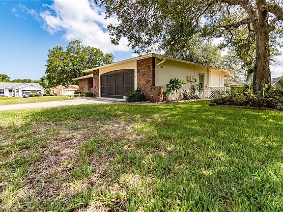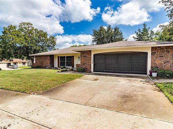 Desirable Beacon Woods East Ravenswood Village! This lovely home has a great view of the surrounding neighborhood, high and dry on this nearly 1/3 acre corner lot, (NO FLOOD INSURANCE!!) replete with lush, mature tropical foliage, such as bird of paradise and crotons to name just a few. This split plan home features a large master en-suite, with a step in shower, sliding glass doors to the porch, and has a large walk in closet and a separate linen closet. The 2nd bath has a tub/shower combo, and is located near the 2nd bedroom, has a large closet. The inside laundry has a laundry tub, washer, dryer, and cabinets. The family room has a wood burning fireplace, and the eat-kitchen has a large pantry closet, plenty of cabinets, and plenty of counter space to make prepping for your party a breeze, and you can easily serve your guests through the convenient pass-through window to the porch. The living/dining area has lots of natural light, and large picture windows. Dining area has sliding glass doors to the porch. BRAND NEW HIGH EFFICIENCY RHEEM HEAT PUMP INSTALLED 7/29/2019!!The porch is enormous, and is sure to entice you every morning to come sit and enjoy your morning coffee. The 2 car garage is loaded with an abundance of built in storage space, enough for all your tools and lawn equipment, and work bench for all your projects. Patio off the back porch for grilling or watching the birds, bees and butterflies. Outside shower, too! Clubhouse has pool and tennis courts, and playground.