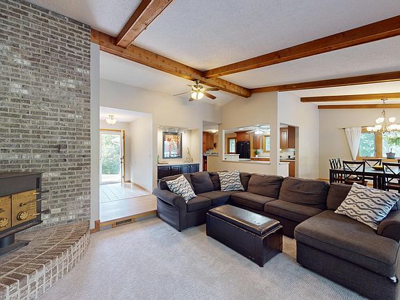 Wonderfully imagined walk-out rambler on a spectacular 3/4 acre wooded lot, with abundant trees offering seclusion. Designed for modern living, this house is an entertainer's dream, and feels incredibly spacious with large rooms throughout. Main floor features an updated kitchen with an abundance of cabinet/counter space. This space opens to a vaulted living room w/ wet bar & separate dining room. Powder room on the main is great for parties. 3 bedrooms on the main, including a primary BR (with en-suite bathroom) that walks out luxury plank flooring & new carpet. Updated main floor full bathroom with double vanities and freshly tiled surround. Enjoy nature with a massive back-yard deck that has double patio doors from the kitchen/dining, as well as off of the primary BR. Lower level has an oversized family room/rec room, along w/ a crafts/exercise room & BR. Oversized 2 car garage! Conveniently located near restaurants/gyms/parks!