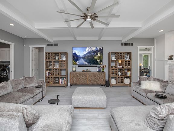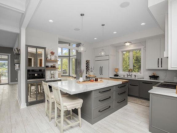 Magnificent 6 BD 3.5 BA 5,104-sq-ft home, all-sports Baldwin Lake, 1 acre, 65-ft waterfront, large sandy beach, dock, columned partly covered upper deck, covered patio, 3-car attached garage, streetside porch. Main level: living w/ coffered ceiling, gas log fireplace, deck access; kitchen w/ island with butcher block/granite counter, seating, Wolfe double oven & range, Miele built-in coffee & espresso machine, Sub-Zero refrigerator; large pantry; dining area w/ wet bar, bay windows, panoramic views; primary BD, walk-in closet from Italy, primary BA; office; large laundry; powder room. Downstairs: rec room w/ wet bar seating, refrigerator, wood-burning fireplace, patio access; BD w/ ensuite BA, 2 BD, BA, bunk room, kennel room, laundry, 3 wall-mounted TVs. Wood, stone, ceramic floors, 10-ft ceilings, 20KW generator, alarm system, wired for sound exterior speakers, lakefront lighting, lake pump irrigation. Newer Trane furnace, a/c; built-in humidifier, dehumidifier.