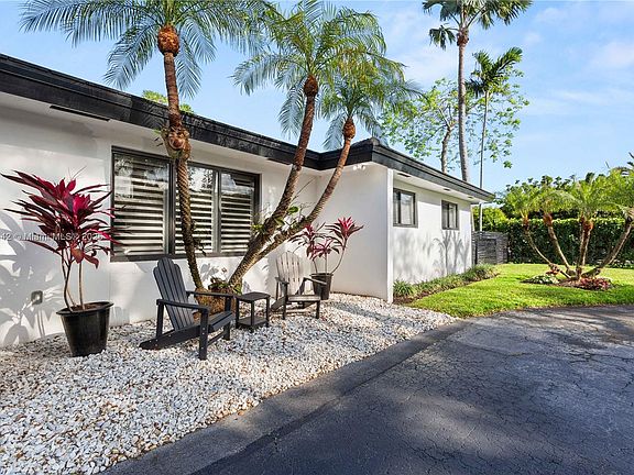 Modern 4 bedroom, 4 bath Pinecrest home, remodeled in 2020 on a “true” half-acre lot on a cul-de-sac with circular driveway & plenty parking. Lots of space to add a tennis/pickle ball court. High ceilings & impact windows & doors. Large kitchen with quartzite countertops, oversized island and seating, with all new stainless-steel appliances. One-of-a-kind professionally designed wine room with commercial refrigeration that seats up to 8 people. Spacious master suite and master bath with two generous bedrooms with accompanying bathrooms & walk-in closet. Large playroom (or 5 bedroom) and 4th bedroom/office which opens to the pool & garden. Inviting pool with jacuzzi, exterior bar, Bose sound system. 2 car garage with excellent storage. This property is not in a flood zone.