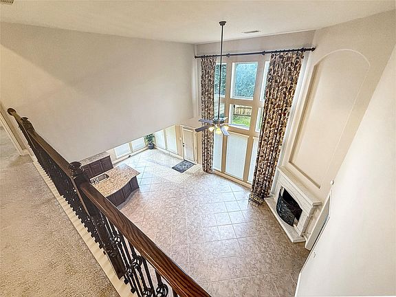 Step into elegance and comfort in this stunning two-story Perry Home, ideally located in the desirable Shadow Creek community. A wide entryway welcomes you into a bright, open floor plan with soaring ceilings and refined finishes throughout. The formal dining room connects to a butler’s pantry and a spacious kitchen featuring a large island, built-in seating, and ample storage—perfect for entertaining. The family room showcases a beautiful cast stone fireplace and a dramatic floor-to-ceiling window, highlighting the open-to-below design and flooding the space with natural light. The first-floor primary suite offers a luxurious retreat with a glass-enclosed shower, soaking tub, dual sinks, and a large walk-in closet. Upstairs, a versatile game room and all secondary bedrooms provide privacy and flexibility. Enjoy outdoor living on the covered patio overlooking a generous backyard. With a three-car garage and a quiet cul-de-sac location, this home blends style, comfort, and convenience.