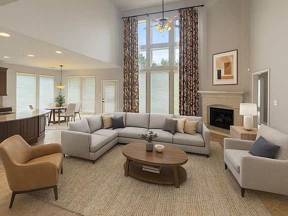 Cast stone fireplaceRefined finishesBright open floor planGenerous backyardDramatic floor-to-ceiling windowFormal dining roomBuilt-in seating