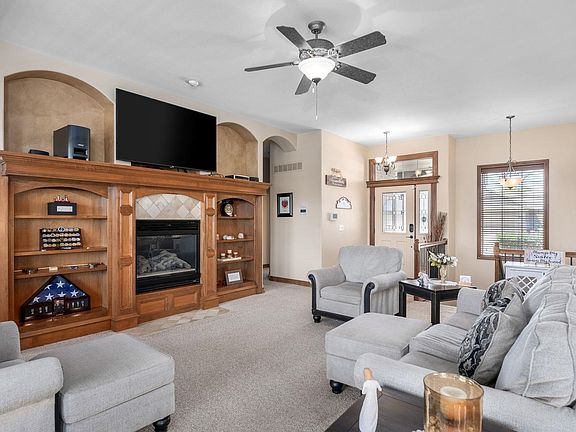 Traditional beauty and quality features is what best describes this home. This former model home offers a layout with 3 bedrooms on the main level and an additional 2 bedrooms on the lower level. The home includes wood floors, granite counters, a walk-in pantry, a wrap-around kitchen with an island and desk, as well as a separate laundry room. The finished walk-out basement adds to the living space and includes a wet bar and a second gas fireplace, providing a cozy and functional entertainment area. There's also a covered deck and patio, offering outdoor spaces for relaxation and gatherings. The kitchen is well-equipped with a wall oven, built-in microwave, and a glass-top range, making meal preparation convenient and efficient. The property's east-facing backyard is enclosed with wrought iron fencing, enhancing both security and aesthetics.