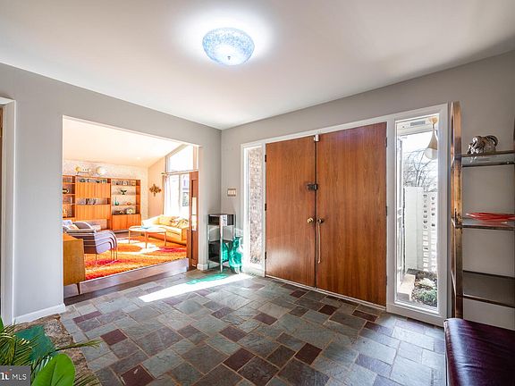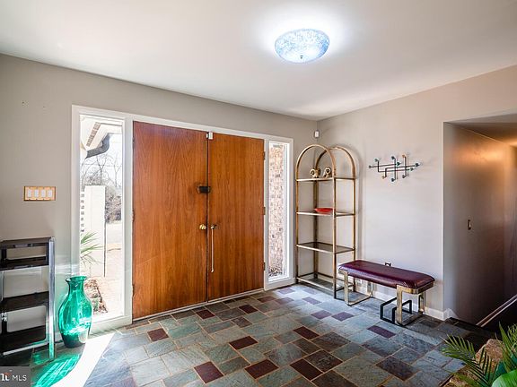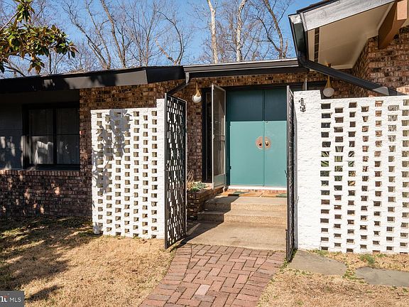 Open House 4/16 2-4pm. 13506 Reid Circle is a historic-designated mid-century modern home by Don Scholz & Associates set in Fort Washington Estates, a waterside community with access to a marina and multiple parks. This is a unique opportunity to be the next stewards of this home. The sellers are only the second family to own the home, having purchased it from the daughter of the original owners. This is the first time the house is being fully presented on the market since it was built. The home's historic designation allows the owners to apply for grants and tax incentives to help preserve and maintain the house. Known as the Scholz Mark ’64/Lang House, the rare version of this design is an excellent mix of well-preserved vintage details and new updates, including newer roof (2017), hot water heater and HVAC (2022) and the luxurious primary bathroom with radiant floor heat. The 3 bed/2.5 bath home has 2,114 square feet of living space on the main level, an unfinished 550-square foot (estimated) basement and one-car garage. The home’s front entrance is surrounded by a small entrance court of perforated masonry walls and decorative wrought-iron gates. The preserved slate entranceway separates the public spaces to the right and back of the home and the private bedroom wing on the left. The entrance is highlighted by an original nine-light, floor-to-ceiling translucent screen of polychrome leaded-glass diamond shaped panes and rustic stone planter. A separate dining area is created on the opposite side of the screen. To the left of the entrance, a small step drops down to the cathedral beamed-ceiling living room with full stone wall with fireplace, wall of glass and period-appropriate cork flooring. The eat-in kitchen features a u-shaped work area with well-preserved wood cabinets and Formica countertops. While the lighting and appliances are updated (Samsung stainless steel), the kitchen still retains the vintage Caloric wall oven, Nutone exhaust hood and intercom/radio. Just off the kitchen is the powder room, laundry area (2021 LG washer and dryer) and access to the garage and basement. The half bathroom has new terrazzo-style ceramic floor tile, high-end cement sink, vintage original mid-century wallpaper imported from Italy and new Kohler toilet and hardware. Past the kitchen on the back of the house is a beamed cathedral ceiling family room with walls of glass and original wood paneling. While the family room shares the same roof line design as the living room, this area is a more casual counterpoint to the more formal living area on the front of the house. Sliding glass doors open to brick patio and backyard. The bedroom wing includes three bedrooms with cork flooring and two full bathrooms, including the primary suite and renovated bathroom. The large hall bathroom retains the original tiles and cabinetry along with new modern faucets and lighting. The primary bathroom, which underwent a major renovation in 2022, features a luxury walk-in rain shower with custom glass surround, separate soaking tub, heated floors with terrazzo-style ceramic floor tile, floor-to-ceiling subway wall tile, new Kohler toilet and hardware and mid-century style walnut vanity with white quartz countertop and double sinks. Exquisite mid-century modern inspired lighting and modern metal and glass wall storage units complete the transformation. Vintage Danish wardrobes in the primary bedroom will convey. The house, set on a .23 acre flat, wedged-shaped lot with large front lawn, is located just 13 miles south of Old Town Alexandria and is less than 18 miles to Capitol Hill. The home is nestled at the tip of the Fort Washington area near Piscataway Park with its trails along Piscataway Creek, Fort Washington Marina and Fort Washington Park on the Potomac River, which you can see from the front lawn.
