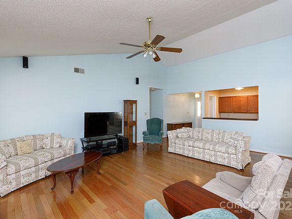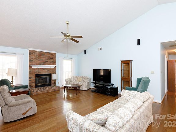 Nestled in a sought-after established neighborhood, this spacious home sits on a large lot with an oversized garage and easy access to I-77, shopping, and restaurants. A charming front porch welcomes you inside, where the living room impresses with its vaulted ceiling, classic brick fireplace, and convenient wet bar — perfect for entertaining or relaxing evenings. The floor plan also features a formal dining room and a generously sized kitchen with a large eating area, offering plenty of space for gatherings. The primary suite serves as a private retreat with a tray ceiling, dual sinks, a garden tub, and a walk-in closet. Outdoor living is equally appealing with a huge deck ideal for cookouts or simply enjoying the view of the spacious yard. A storage building provides additional functionality for hobbies or extra belongings. With its inviting spaces and prime location, this home is ready to suit your lifestyle.