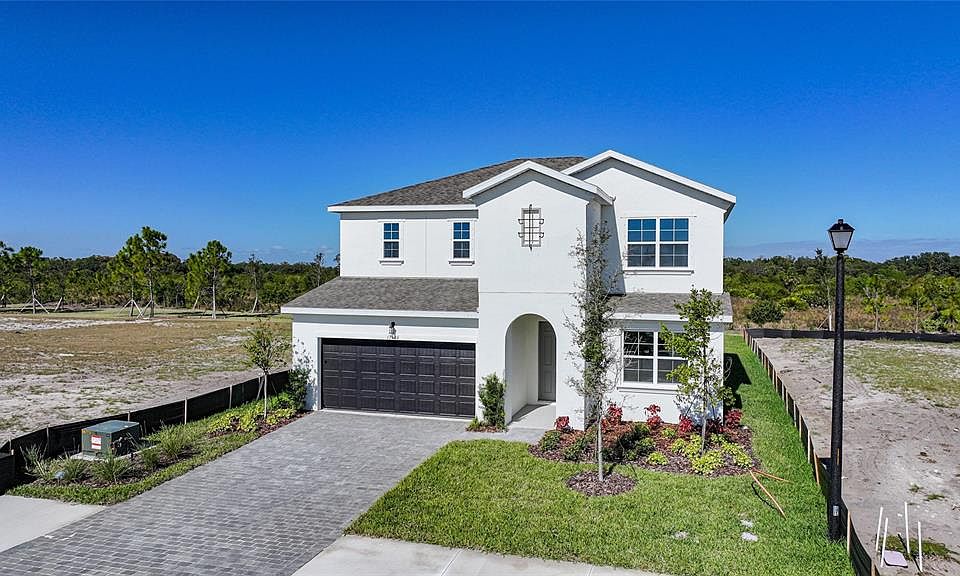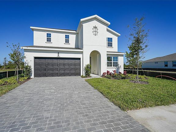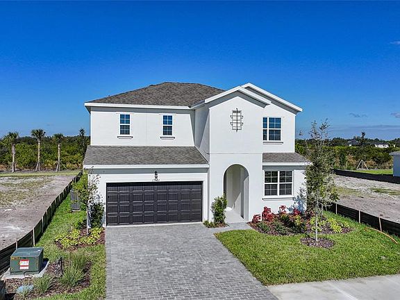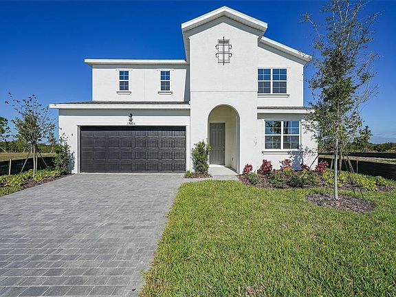 Step into refined Florida living with this stunning Modena floorplan by Dream Finders Homes, offering an impressive 2,519 sq ft of thoughtfully designed, two-story elegance. Blending modern function with elevated style, this 4-bedroom, 3-bath residence delivers both sophistication and comfort in one beautifully crafted home. The moment you enter, you’re welcomed by a bright, open-concept living space where soaring ceilings, abundant natural light, and seamless sightlines create an inviting ambiance. The expansive family room flows effortlessly into a spacious dining area and a gourmet kitchen—the true heart of the home—featuring a large center island, walk-in pantry, and upscale finishes perfect for both everyday living and memorable entertaining. The first floor also includes a full bedroom and bath, ideal for guests or multigenerational living, along with additional flexible space that can adapt to your lifestyle—whether you envision an office, playroom, or cozy reading nook. Upstairs, the luxurious primary suite serves as your private retreat, complete with a spa-inspired bathroom and an oversized walk-in closet designed for exceptional storage. A versatile loft adds even more room to unwind, work, or gather, while two generously sized secondary bedrooms offer comfort and privacy for family or guests. Outdoor living is elevated by the covered lanai, providing a tranquil extension of the home where you can enjoy morning coffee, evening breezes, or gatherings with friends in the Florida sunshine. Immaculate design, flexible spaces, and high-end finishes make the Modena a standout choice for those seeking modern luxury with room to grow.
