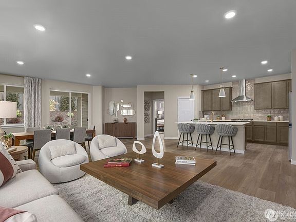 This model home has extensive upgrades! The exceptional design and craftsmanship in this rambler features the highly desired 1990 floor plan with 3 bedrooms, 2 baths, a large great room, and a versatile den, home office or 4th bedroom. The impressive 9-foot ceilings and wide entry lead to a spacious great room filled with natural light. A gourmet kitchen with generous island & walk-in pantry, open to the dining and living areas—ideal for entertaining. The covered patio invites relaxation and outdoor gatherings. The primary suite is thoughtfully designed with a large linen closet and elegant bath. Nestled in Liberty Ridge phase 1, this home offers scenic views and convenient proximity to shopping, dining, and Sunrise Community Park.