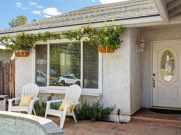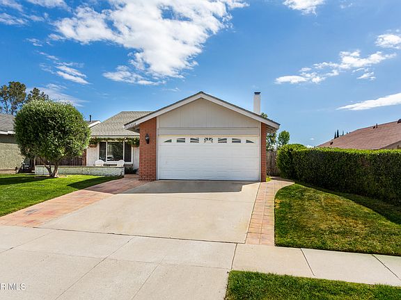 Welcome home to this gorgeous single-story beauty in the heart of Moorpark! With 3 bedrooms and 2 full bathrooms, this home is perfect for any buyer. Once you walk in, you will notice the open floorplan. Formal living room allows substantial light to enter the home while family room is framed with a brick lined fireplace. Spacious kitchen, which is open to the family room, has plenty of counter space, walk in pantry and a built-in hutch that offers a plethora of storage. Home has a meticulous 2 car garage with laundry hookups and additional storage in rafters. Amenities include custom paint, crown molding, central AC/Heat, dual paned windows, and wood-like flooring throughout. The kitchen slider will allow access to the handsomely sized backyard with a newer patio cover, newer fence, water feature, solar lanterns, orange tree, newer landscape, paved side yard and a large grass area. HOA includes greenbelt as well as a gated area that includes pool, kiddie pool, clubhouse, grass and play area. Home is close to schools, parks and shopping! Peach Hill Park and Elementary are within walking distance. Come and see this home today!