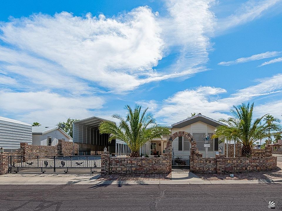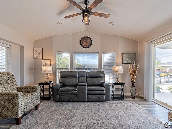 Pristine upgraded manufactured home with RV amenities in the Foothills! This beautifully maintained, move-in ready home boasts modern updates throughout. This home offers comfort, functionality, and flexibility. Step inside to find an immaculate interior featuring granite countertops, newer appliances, an electric range, laminate plank flooring, upgraded window treatments. The interior and exterior were freshly painted. The home includes dual-pane windows with sunscreens for energy efficiency and comfort. Situated on a spacious 7,390 Sq. Ft. lot in a sought-after area in the foothills. The home is Pit set and features a concrete covered patio, with a low maintenance yard and automated sprinkler system. “The property is accessed via automatic electric gates, providing both security and convenience. Included is a fully equipped permitted RV support building with its own washer, dryer, refrigerator and shower, plus a 50-amp RV hookup and a permitted RV portal cover. Whether you're looking for a seasonal retreat, full time residence, this home is ready for you, pristine, upgraded, and full of possibilities!