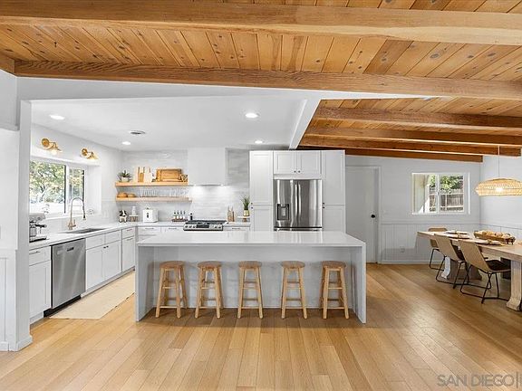 Completely remodeled in 2022, this 3 bedroom, 2 bath home with an attached 2-car garage, separate laundry room, and RV parking has it all. A new roof installed (April 2023), Solar Panels, and an EV Charger. Step through the charming Dutch door into an open great room featuring beautifully refinished exposed beam ceilings and durable luxury vinyl plank flooring throughout. The newly renovated kitchen has a large island, quartz countertops with subway tiled backsplash, stainless steel appliances, upgraded fixtures, and even a wine fridge! Both bathrooms have been tastefully updated with new cabinets, countertops, tile/stone finishes, fixtures, and glass enclosures. You’ll also enjoy new lighting and ceiling fans throughout, plus updated mechanicals including a 2022 A/C, furnace, and water heater. Garage has been finished with new flooring. Set on a .34-acre usable lot, the property offers a large play area with low-maintenance artificial turf—perfect for family fun or entertaining.