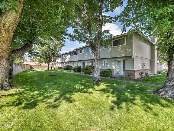 Nice townhome in downtown Gardnerville, clean and move-in ready! Beautiful front area with grass and mature trees. Features 3 bedroom, 2.5 bath, 1320 sf., spacious master bedroom with walk in closet and balcony, fireplace, laundry area, private fenced patio with storage area, covered parking. Walk to shopping, dining, parks and the community/senior center. Weed eater included.