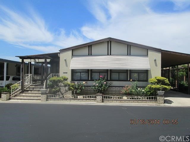 Gorgeous Triple-wide Home in Lake Park Brea - 2 Bedrooms and 2 Baths - Price reduced. Roof just repaired year guarantee. Formal Entry opens to the Great Room with Open Beam Ceilings. Formal Dining Room - Large Kitchen with lots of Counter Space, loads of Cabinets. Eating Bar which opens to the Great Room with Fireplace, and a Great Bar for Entertaining - - Guest Bath off hallway. Guest Bedroom with lots of light and large closet - Master Suite to please anyone - Large Bedroom has Huge Walk-In Closet - Master Bath with separate Shower and Garden Tub Covered Carport with lots of room leads to Gated area with a Great Storage Shed Main Entry is via the Lovely Covered Patio/Deck Scenic greenbelts and winding walkways throughout the Park lead to the Sparkling Lake and Clubhouse just a few doors down. - Enjoy your leisure lifestyle! Fun includes: Parties in the Recreation Pavilion, Bingo, Bunco, Fishing, Library, Billiards, Potlucks, Casino Outings, Pool & Spa, Tennis and more!