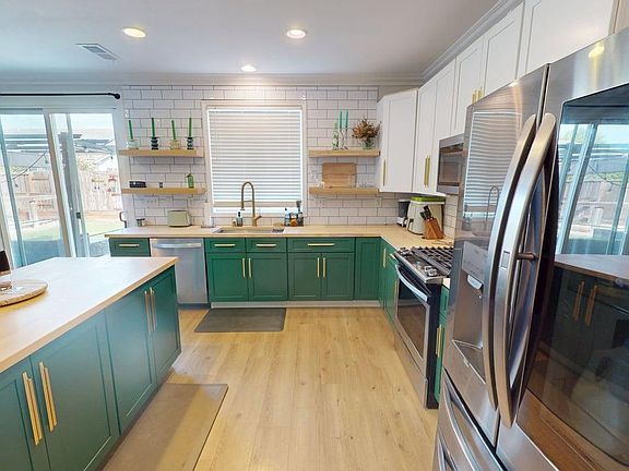 Welcome to this gorgeous 4-bedroom, 3-bath home showcasing designer touches and custom upgrades throughout. The chef's kitchen boasts a functional island, butcher block countertops, gold hardware on cabinets, a full-height backsplash from counter to ceiling, stainless steel appliances and a spacious pantry. The open concept living and dining area create great spaces for gatherings and celebrations. The formal dining room is currently being used as an infant's playroom and the living room is housing a bar for those extended nights of entertaining. The upstairs features a fabulous guest bathroom with expanded vanity and quartz countertops. All four bedrooms are conveniently located together upstairs. Outside, enjoy a backyard designed for both fun and function, complete with a dog run, storage shed, and plenty of space to make your own. Plus, leased solar keeps energy costs low so you can focus on enjoying life's best moments. Don't forget to click the video link for a self-guided 3-D tour and see why this home is the perfect fit for your next chapter!