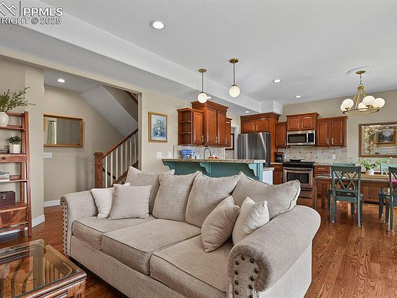 Experience the low-maintenance lifestyle in this beautifully updated 3-level townhome, just steps away from all the shops, pubs, restaurants, and entertainment Old Colorado City has to offer! With stunning mountain and city views, this move-in-ready home is packed with upgrades. The main level features an open-concept design ideal for entertaining, with abundant natural light streaming through large windows. The spacious great room includes a cozy gas fireplace and seamlessly connects to the kitchen and dining area. The kitchen boasts custom tile backsplash, stainless steel appliances, and an incredible walk in pantry for plenty of storage. A deck and powder bath complete the main floor. Upstairs, the primary suite offers vaulted ceilings, a large walk-in closet, and a beautifully updated 5-piece bath with a custom-tiled walk-in shower, double vanity, and soaking tub. A second bedroom, full bath, laundry, and a large loft with another deck complete the upper level. High-end finishes like real hardwood floors, built-ins, and custom closets maximize both style and storage. The unfinished walk-out basement provides a blank canvas with a rough-in for a 4th bathroom—perfect for adding a 3rd bedroom or second family room to build equity. 2 car attached garage with lots of upper storage. Conveniently located with easy access to I-25, downtown, Red Rocks, and much more! Don’t miss out—come see it today!