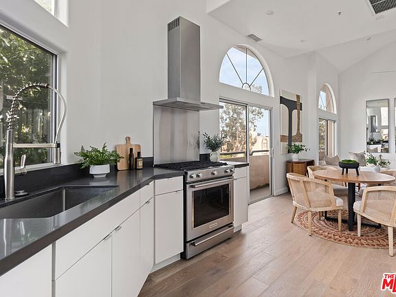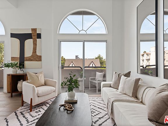 Welcome to Penthouse #1, a townhome-style condominium, that offers a thoughtful combination of modern design and urban convenience. Extensively renovated in the last few years, this corner penthouse features high-quality craftsmanship and stylish upgrades. Upon entering, you'll find a bright, open living area filled with natural light from oversized windows and sliding glass doors, which frame impressive views of the downtown skyline and nearby hillsides. The open-concept layout, complemented by vaulted ceilings, creates a sense of spaciousness and flow throughout the main level. The living area connects seamlessly with the dining space and a well-appointed kitchen, complete with high-end stainless steel appliances, custom lighting, and a window overlooking the greenery of the street below. Step onto the private wrap-around balcony to enjoy a morning coffee or take in the sunset. The lower level is home to the primary suite, a comfortable space with an en-suite bathroom featuring a soaking tub, double vanity, and modern finishes. Two additional bedrooms on this floor provide flexibility as guest rooms or home offices, with a second bathroom to accommodate both guest bedrooms. Practical amenities include a dual-zone HVAC system with a Smart Thermostat, in-unit washer and dryer, and two reserved garage parking spaces. This condo's prime location puts the best of West Hollywood at your doorstep, with easy access to entertainment, dining, and shopping. The neighborhood offers a lively yet relaxed atmosphere, perfect for enjoying everything the area has to offer.