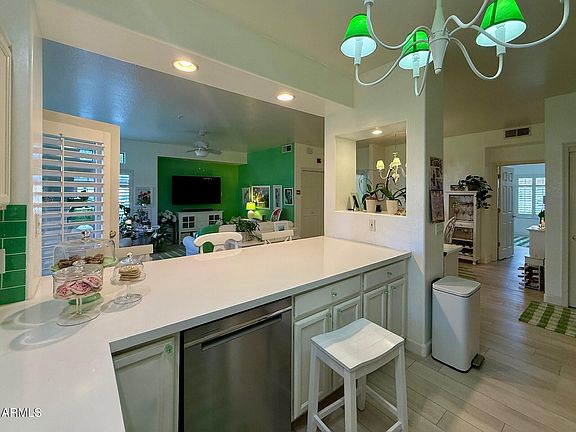Beautiful, well-maintained condo in a great Chandler location! A corner unit on the first floor with 2 covered parking spaces; Relax on your spacious patio that backs up to the greenbelt with a motorized sun shade to block the sun and give privacy; newer HVAC, beautiful flooring replaced 2 years ago, New Kitchen Oven and Dishwasher, Quartz counters; Indoor laundry with washer and dryer included, and Plantation Shutters throughout! Come and see all that this home has to offer!