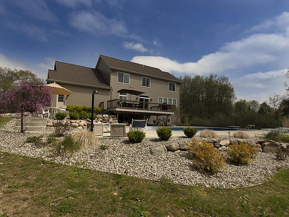Enjoy outdoor living at it's best with a resort-like backyard! This almost new custom built home sits on 4 acres and features a salt water in-ground pool with lots of room to lounge around. A large deck, stamped concrete areas and a fire pit make it the perfect space to entertain. Inside the kitchen features a pantry, large island and stainless steel appliances. You'll appreciate the large mudroom with walk-in closet for storage. The spacious room with french doors off the foyer offers versatil ity as either a formal dining room, office or craft room. Upstairs you'll find 4 bedrooms, 2 1/2 baths, laundry and extensive master closet. The walk-out lower level offers more space with a family room, bedroom, bath and a changing area for the pool when you're ready for a dip. Come see!