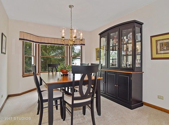 Meticulously maintained home offering 4 bedrooms, 2 1/2 baths in the Rolling Oaks neighborhood of Carol Stream! Crown molding, six panel doors, new carpet, neutral decor and generous size rooms. Kitchen boasts tons of cabinets and prep space; opens to family room with cozy wood burning brick fireplace accented with custom built 'ins. Family room overlooks spacious deck for entertaining and relaxing! Luxurious master suite highlighted with private sitting room, his/her walk-in closet, whirlpool tub, double sinks and a separate shower. Conveniently located 2nd floor laundry! Finished basement offers recreation room, full-size custom bar, walk-in cedar closet and cement crawl for tons of storage needs. Value added updates include: furnace '13, a/c '13, water heater '13, architectural style roof '11 and driveway '11. Nestled on an oversized corner lot and bordered by homes and a quiet cul-de-sac. The icing on the cake; private wrap around front porch to enjoy those summer days and nights!