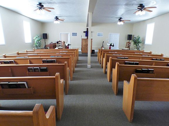 LOCATION, LOCATION, LOCATION!!! What a great location for your MULTI-FAMILY HOUSING UNITS, apartments, business, office, church or whatever you want to put on this property. One of the busiest highways in the area, the corner location, large parking lot and attractive building makes this a premium spot. Set up as a church this building includes everything you need to start worship services or meetings immediately after closing. Walking through the doors into the foyer is a table to display pertinent information. A gathering area includes a restroom and storage closets with a fellowship room beyond. The floor is easy to clean tiles in those areas. To the West is a sanctuary with stage, pews and other items for services. Several ceiling fans supplement the central air and furnaces. An office and huge storage room finish out the back of the building. A surprise feature is an efficiency apartment on the second floor with it's own entrance and a full bathroom. Furniture, pianos, refrigerator and misc. included. All covered by a metal roof and ready for your ideas.