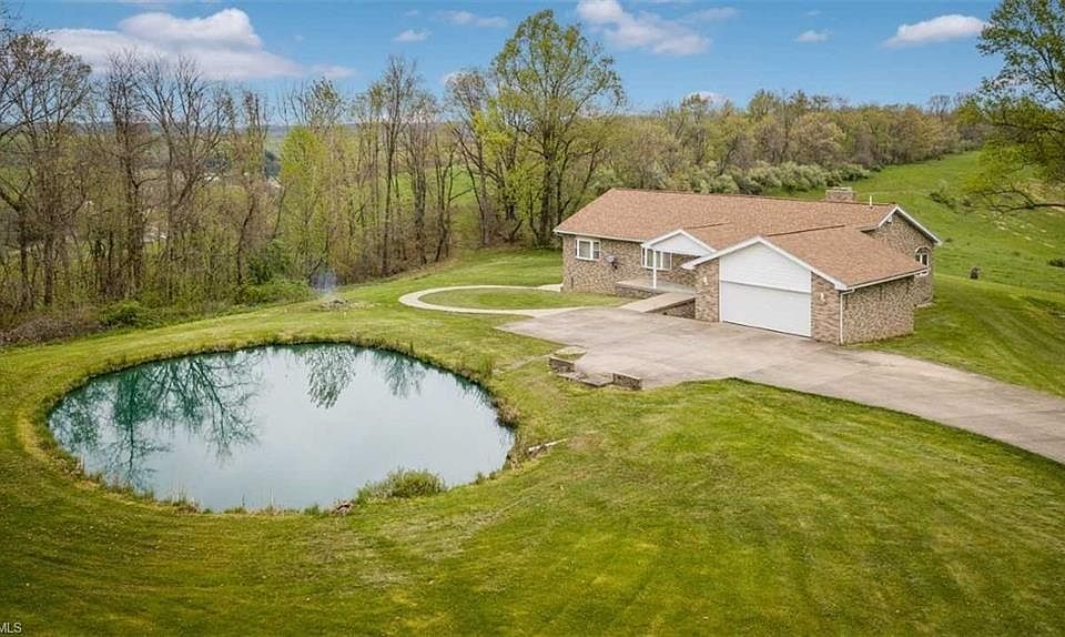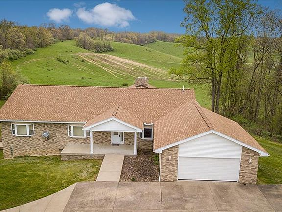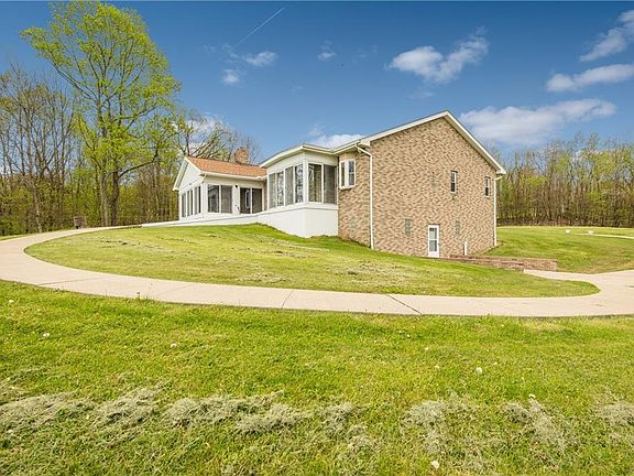 Spacious (handicap accessible) brick ranch on 14 acres with a pond. Beautiful wooded country setting. Over 4200 sq.ft. on 2 levels. Large first floor family room with 3-sided propane fireplace/bar and surround sound. Nice kitchen with eating area and French doors to sunroom with wood burner and Nature Stone flooring. First floor office or second bedroom. Formal dining room. Master bedroom $12,000 Jacuzzi tub in bath, walk in closet, First floor laundry and sunroom with Nature Stone flooring. Walkout lower level with separate entrance and poured concrete walls has 2 bedrooms, one bath, large Rec room w/Woodburner and exercise room with vinyl flooring. Geothermal heat. Nice 2 car attached garage plus detached 26' x 42' garage. Cement driveway. New roof in 2019. Central vac. Property is mostly wooded but there is a nice open field ideal for animals. Ideal mother-in-law suite in LL with separate private entrance. RV parking pad with 30 amp electric and dump station. Indian Valley schools. Frontier power electric average $190 monthly. No mineral rights transfer- sellers do not own. Range, refrigerator and 2 wood burners stay.