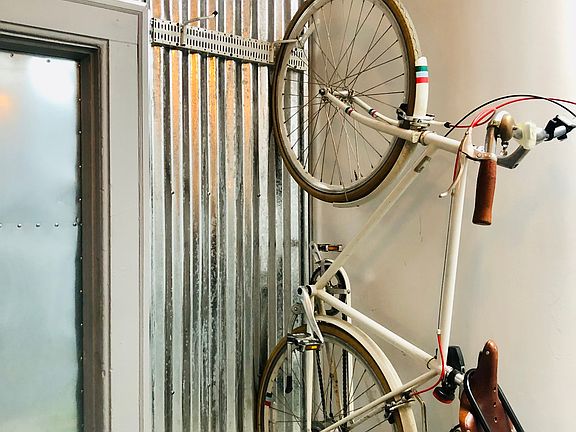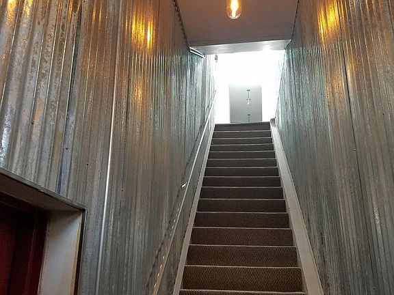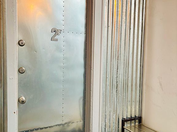 Corrugated steel remodeled entryway hallway with camera and rfid entry system