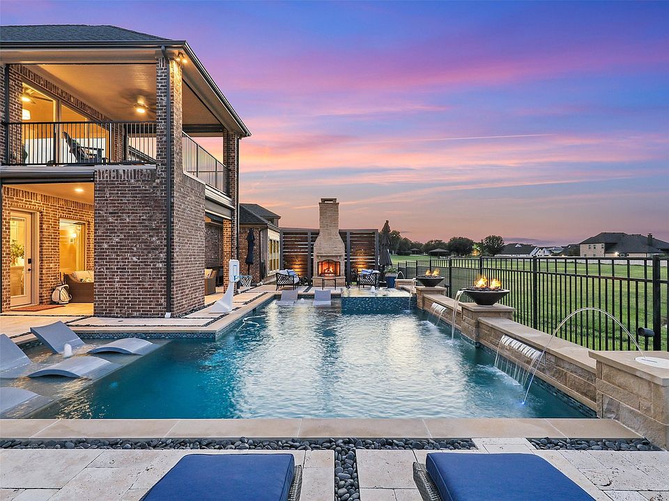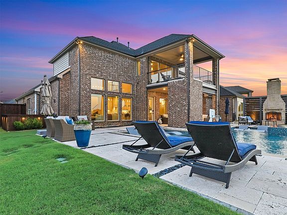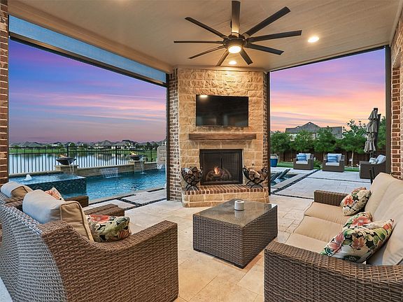 Beautiful 2-story lakeview home in highly sought-after Prosper, built in 2018 and offering 4,308 sq. ft. of exceptional living space. This property combines elegant design with modern amenities and thoughtful features throughout. The home features 4 spacious bedrooms, 4.5 baths, a private study, large dining room, and generous game room. Vaulted ceilings and hardwood flooring extend throughout, creating a warm and inviting feel. Three fireplaces add comfort and character, while oversized windows showcase natural light and stunning lake views. Designed for both everyday living and entertaining, the floor plan flows seamlessly, with a chef’s kitchen at the center of it all. The oversized laundry room provides convenience and functionality. The backyard is an entertainer’s dream, complete with a sparkling pool, outdoor living space, and putting green, all set against the backdrop of beautiful water views. Additional highlights include a 3-car garage, generator for peace of mind, storm shelter, AC in garage, 2 electric car chargers, and premium finishes throughout. This home blends comfort, practicality, and elegance, making it a rare find in Prosper. Pool table and TVS convey with property.