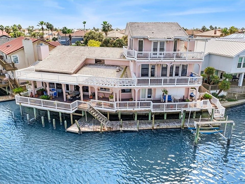Wake up every morning to the breathtaking expanse of the Laguna Madre from this striking three-story coastal retreat. Perched on one of the most coveted waterfront locations on Padre Island, this home offers the kind of unobstructed, wide-open views that define true island living. Multiple balconies on every level invite you to soak in the sea breeze, watch the sunrise shimmer over the water, and unwind to the rhythm of waves and passing boats. This residence is built for those who dream big — offering the rare opportunity to reimagine a waterfront haven exactly to your taste. While it needs updating, the bones are strong, the views are unmatched, and the potential is undeniable with 4 bedrooms, 4 full baths, and 2 half baths, hurricane shutters, and so much more. Cast a line from your backyard, explore endless fishing and water-recreation options, or simply relax and let the serenity of the coast surround you. With the best location on the bay, this property is a blank canvas for crafting your ultimate luxury island escape.