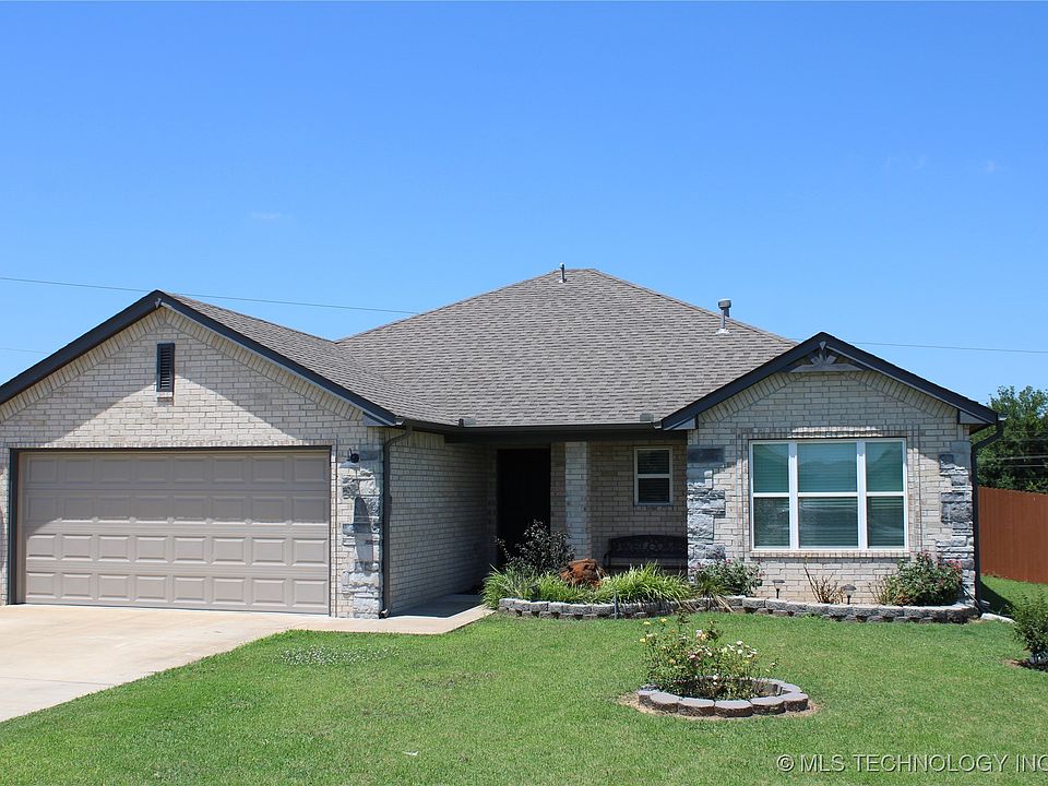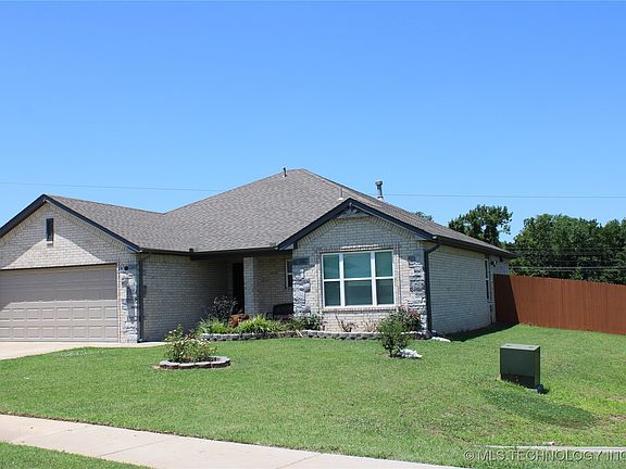 Welcome to this beautiful 3-bedroom, 2-bath split bedroom plan, in desirable Ashbury Park Phase VI! Ideally located just steps from the community splash pad , pavilion and pond. This home backs to a greenbelt and features a full privacy fenced backyard, perfect for relaxing or entertaining. Inside, you'll find an open-concept living area with a cozy gas fireplace and kitchen equipped with granite counter tops, stainless steel appliance, a pantry, and plenty of storage. Perfect for entertaining! The primary suite boasts a soaker tub, separate shower, dual vanities, and dual walk-in closets. Additional features include a water softener system, a tranquil water feature in the front flower bed, steel screen security doors on both front and back doors, and two-car garage with new garage door. All just minutes from Owasso and Collinsville! This home has it all!