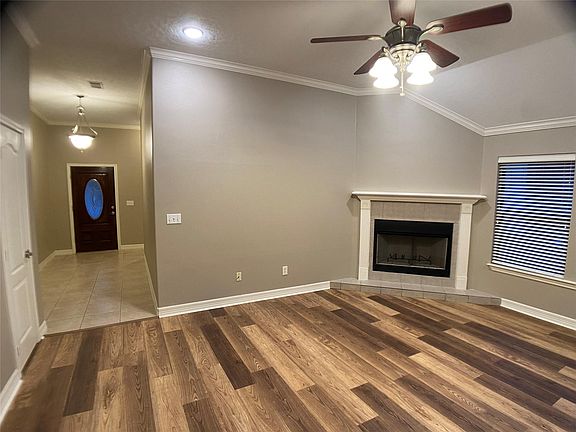 Nestled in the desirable front section of Walden on Lake Conroe, this charming single-story home features 3 bedrooms, 2 bathrooms, and an oversized 3-car garage. The interior boasts elegant finishes, including granite countertops, crown molding, tall ceilings, and sophisticated polished nickel fixtures. A touch of class is added by the French doors leading off the dining area, and the refrigerator is included for a seamless move-in. Outside, you'll find a beautifully landscaped front yard and a fully fenced backyard, providing a perfect blend of curb appeal and privacy, all within the sought-after Walden community.