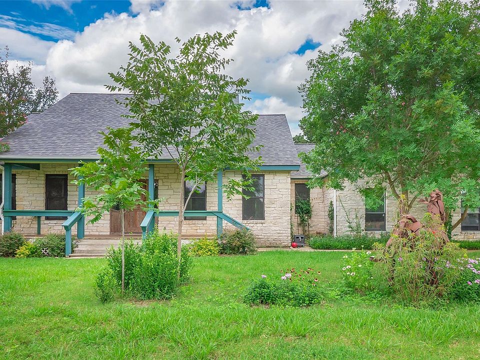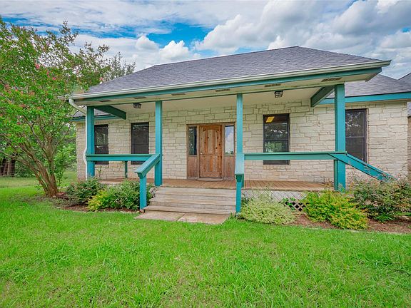 Experience the ideal balance of country serenity and modern convenience with this beautiful property, located just 5 minutes from the 45 Toll Road. Featuring 3 bedrooms, 2 full baths, 2 half baths, and an upstairs bonus room currently used as a 4th bedroom, this home offers a versatile and spacious layout. The open floor plan is highlighted by a stunning floor-to-ceiling limestone fireplace with a hearth, vaulted ceilings, built-in storage, and a dining area complete with a built-in desk. The kitchen offers granite countertops and a breakfast bar, perfect for casual dining. The primary suite features direct access to a large back deck—an inviting space for entertaining or unwinding while overlooking the peaceful surroundings. Outdoors, you’ll find an inground pool with a waterfall, a tranquil fish pond, and mature pecan trees providing shade and charm. Designed for country living, the property also includes a barn with horse stalls and a corral. Enjoy the best of both worlds—quiet rural living with quick access to shopping, dining, and major employers.