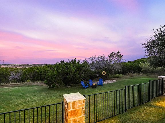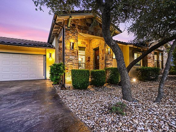 Located at the front of the highly desirable Falconhead neighborhood, this one-story home is a true standout. Its beautiful stone exterior, tile roof, lush landscaping, and welcoming covered porch create instant curb appeal. Inside, expansive windows flood the living room, kitchen, and primary suite with natural light and showcase absolutely stunning panoramic Hill Country views. High ceilings enhance the open, airy layout, while three spacious bedrooms plus an office/flex room provide plenty of versatility. Designed for modern, low-maintenance living, this lock-and-leave home offers the perfect balance of comfort and style. The covered back patio is an ideal spot to enjoy your morning coffee or unwind at sunset. Expansive backyard offers plenty of space for entertaining, with a fenced dog run ideal for pets. Whether entertaining indoors or relaxing outdoors, this home delivers the best of both worlds. It’s ideal for busy professionals, retirees and/or a second home for those seeking convenient access to restaurants, healthcare, shopping, and the Falconhead Golf Club. Special features include owned solar panels—with electric bills averaging just $0–$30 over the past six months. HOA fees cover landscaping (front and back), irrigation water, community maintenance, and access to the neighborhood pool and clubhouse. This condo is truly a rare gem!