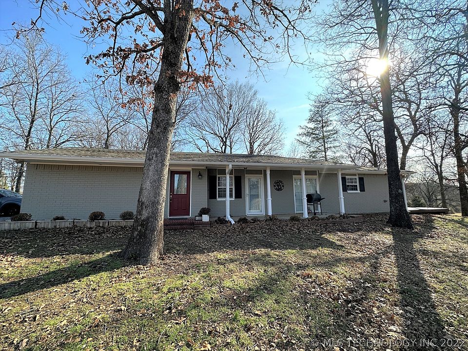 Gentleman's Ranch! This 5.11 acres is located just off a paved road. The home has been beautifully maintained with new Exterior & Interior paint & New Seamless Guttering. The home is an 1863 sq ft, (per CH), 3 Bedroom, 2 full bath, Brick home. The home features a HUGE Den with a gorgeous electric fireplace for the perfect amount of heat and ambience! The second living room is open to the spacious dining area and kitchen. The perfect layout for entertaining or large family gatherings! The kitchen has new stainless appliances and a pantry! The luxury vinyl plank flooring looks like wood floors and is perfect for country life! Bring on the inside pets and kiddos! The Bathrooms have been updated and are lovely! The Primary suite has a large walkin closet and a private covered patio for coffee in the mornings as the sunrises!! This adorable little ranch has fenced pasture land, a wet weather creek for crawdad hunting, a charming red & white Chicken Coop, A Dog Kennel with 3 runs, a 2 stall horse shed and a 20x28 Shop with overhead door and electric! The property is gated and awaits the new owner!