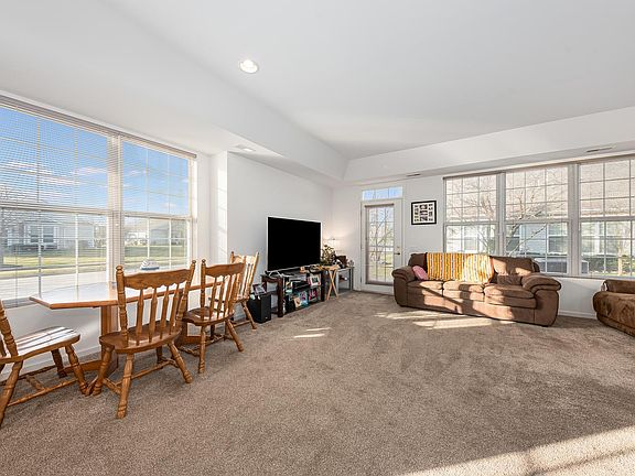 Rarely available end unit in the Del Webb Sun City Community! This two bedroom, two bath home is move-in-ready, and features neutral colors throughout. Very spacious living room/dining room with new carpet, tons of windows and a garden door leading to a patio! Nice kitchen with 42" oak cabinets and all appliances stay. Large master bedroom with trey ceiling, walk-in closet in, double-bowl vanity in MBR bath. This active adult community has so much to offer, so don't wait to make this your home! Enjoy this active adult, 55+ Community with an enormous Clubhouse, golf course, tennis courts, indoor & outdoor pools, Jameson's Restaurant, Fitness Center and so much more! No more lawn care or snow removal for you! Minutes to downtown Huntley and I-90 make this a great location for easy travel. These homes sell fast, so make your appointment today!