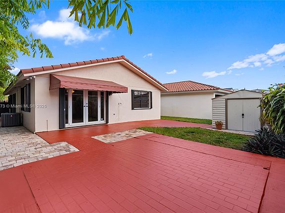 Stunning & meticulously rejuvenated 1-story home located on a quiet cul-de-sac! This spacious 2-bedroom, 3-bathroom residence offers a bright, airy floor plan with volume ceilings and abundant natural light throughout. The inviting living room opens to a formal dining room with elegant French doors, while the kitchen seamlessly flows into the family room and features a pantry, custom cabinetry, and snack counter, perfect for everyday living. The dream master suite includes a generous walk-in closet, and the home showcases beautiful wood and tile flooring, complete accordion shutters, and a convenient laundry room. Step outside to your private backyard oasis, surrounded by lush greenery and ideal for entertaining. Enjoy a spacious pavered deck, covered patio, storage shed, and a covered carport with additional driveway parking. The newly painted interior, driveway, and exterior deck make this move-in ready home shine. Additional updates include a NEW ROOF (2023) and recent pressure cleaning. Located near FIU in a prestigious, lifestyle-rich neighborhood known for its excellent schools, great community feel, and proximity to major highways, shopping, and restaurants. Custom security gates add peace of mind, and the fully fenced yard offers the perfect setting to unwind or host gatherings. One-owner home a rare find offering comfort, value, and charm in an exceptional location!