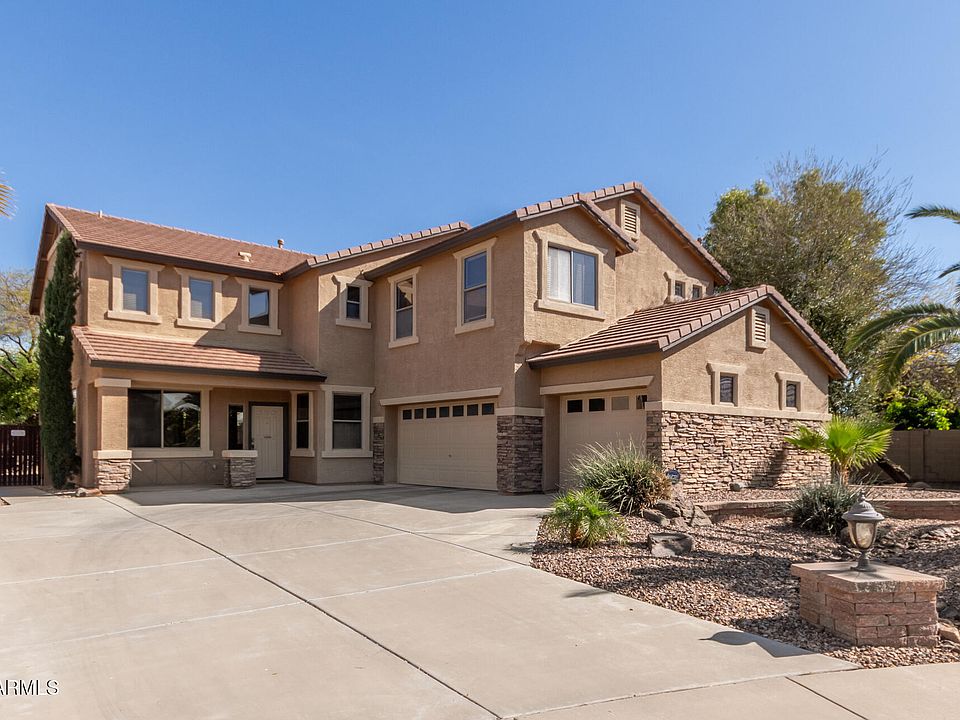 Welcome Home!!! This gorgeous 4 bedroom 2.5 bath 2 story Cul De Sac home at Litchfield Manor in Surprise is in a fantastic location. Close to restaurants, shopping, schools, parks, spring training baseball & easy access to the 303 Fwy. As soon as you step into this home, you can see the pride of ownership with all that has been done. You'll love the layout of this home. Your sizable kitchen offers tiled counter tops, a large island/breakfast bar for extra prep & storage, full height tiled backsplashes, filtered water, a pantry & plenty of crown molding cabinetry for organization. Your spacious upstairs master suite offers a plethora of natural light, a walk in closet, dual vanity, along with a walk in shower & soaking tub to enjoy. This Cul De Sac home also offers upgraded ceiling fans & lighting, a den/office & large loft area to utilize, a RV gate, along with a 3 car garage with a water softener & cabinets for additional storage. Your backyard oasis was designed for entertaining. This lovely backyard offers a covered tiled patio with ceiling fan, a large gazebo with a ceiling fan, a gas fire pit & built in bbq, mature landscaping with citrus trees, as well as a sparkling pebble tech pool with rock formation water fall to enjoy in our desert sun.