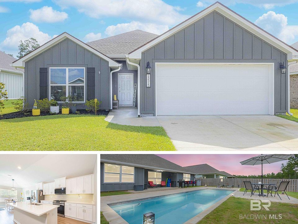 Welcome to the Biltmore section of Stonebridge! 0.9 mile to the StoneBridge Elementary School. This well thought out 4 bedroom, 3 full bath home features a rare layout with a secondary primary bedroom offering its own private ensuite—for guests, or multigenerational living. Murphy Bed installed and conveys with the sale of the home. White painted cabinets, quartz countertops, upgraded tile backsplash, stainless steel Samsung appliances (Gas Stove), and a generous corner pantry. The open design flows seamlessly into the breakfast area and living areas. The primary suite offers dual vanity sinks, a garden tub, separate shower, and a spacious walk-in closet. The home is a tri-way split floorplan, laundry room is a separate room that is located across from the garage entrance, but you do NOT have to walk through it to get into home. Drop Zone is located next to laundry room directly in front of garage door entrance. Enjoy peaceful wood line views from the private covered back porch, complete with an incredible 12’ x 26’ Gunite pool featuring a 3–5 ft depth, ozone purification system, and built-in lighting. The Gunite construction offers durability and easy maintenance, while the ozone system keeps the water sparkling clear with reduced chlorine use—while the paver decking offers a stylish and functional upgrade for outdoor living. Key features include Gold Fortified, Thermal doors, 2” faux wood blinds, energy-efficient double pane windows, Fully Fenced, gutters and a smart home technology package.Located just minutes from shopping, dining, schools, and a short drive to the beautiful Gulf Coast beaches. Community amenities include pools, playgrounds, tennis courts, basketball courts, baseball field, and a bocce court—something for everyone! Buyer to verify all information deemed important during due diligence. Buyer to verify all information during due diligence.