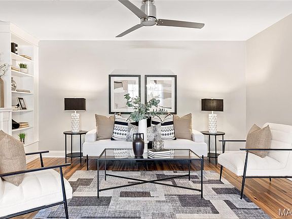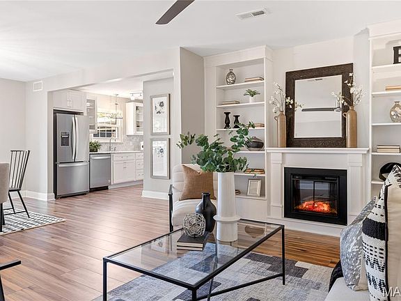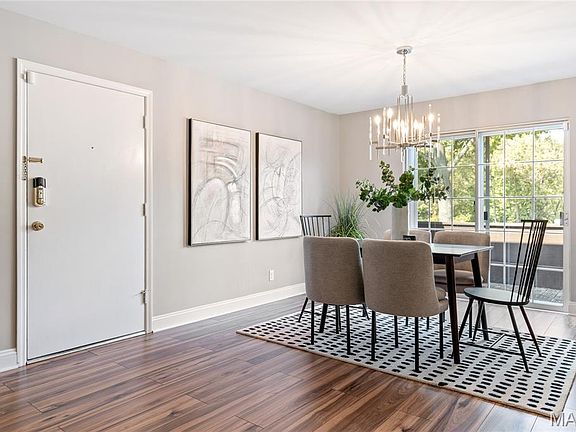 Spectacular renovation! This sophisticated 1-level condominium features an open floor plan designed to accommodate easy living & gracious entertaining. Spacious living room with fireplace flanked by built-in bookcases adjoins light-filled dining room with French sliding glass door that opens to private balcony overlooking lovely courtyard. Updated kitchen is a chef’s delight with white Shaker cabinetry, Carrara marble countertops & premium stainless steel appliances. Master bedroom suite with 2 double closets & marble bath plus a generous-sized additional bedroom & hall full bath  complete the living quarters. Amenities include clubhouse, pool, 1 garage space & storage unit. Convenient Chesterfield location within walking distance of shopping, restaurants & Faust Park with easy access to Hwy 40.