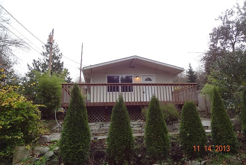 Cozy cottage-style bungalow! This 1-level floor plan features an open living and kitchen area with lots of windows and natural light. One large bedroom + one large bathroom. The 260 SF deck gets great sun + overlooks stone walkway and mature landscaping. Completely fenced with cedar. New stairs off deck for easy access to garden and pond. Separate outdoor storage. Connected to sewer.