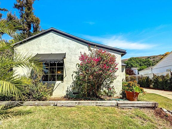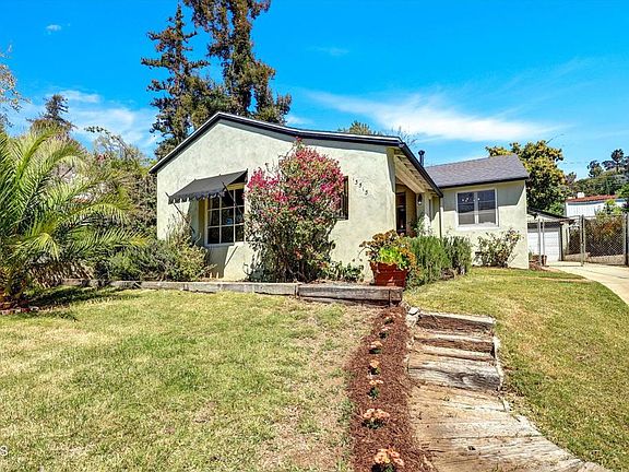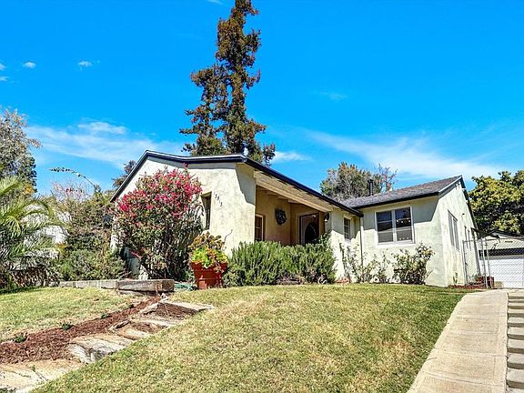 Welcome to this beautiful home, nestled in the foothills, of Historic Uptown Whittier. Built in 1929, perched high above the street, awaits a porch with panoramic views of the surrounding hills. As you enter, charm and character abound, warm hardwood floors flow throughout, enchanting light fixtures and wall sconces in every room, arched doorways and white walls offer an inviting atmosphere. The grand living room with natural light, has a fireplace with custom wood mantle, vaulted wood beamed ceiling, a large picturesque window that is surrounded by built-in shelving. The large formal dining room opens up to the kitchen making it perfect for entertaining. The light-filled kitchen, with white cabinetry, granite countertops, tile backsplash, stainless steel sink and appliances include a stove with double oven and refrigerator. The adjacent hallway has three closets for additional storage. The bright primary bedroom with French doors leads to the private backyard. An elegantly updated bathroom offers a custom vanity, shower with soaking tub, beautiful tile work and wall stenciling for a relaxing sanctuary. The spacious second bedroom has been converted to an office, with wall to wall shelving, a large walk in closet and recessed lighting. There is a dedicated laundry room with cabinets, and door to access the exterior, which leads to the two-car detached garage. The expansive terraced backyard has fruit trees, a covered patio, brick paver pathway, and secluded area with an above ground spa. Other features include, HVAC system, brand new roof installed in 2023, copper plumbing, automatic garage door opener, additional parking behind the home with new electric gate for maximum security and privacy. Conveniently located to Turnbull Canyon hiking trails, Central Park, Whittier College, Historic Uptown with its unique shops and quaint restaurants, all the small-town charm you will love!