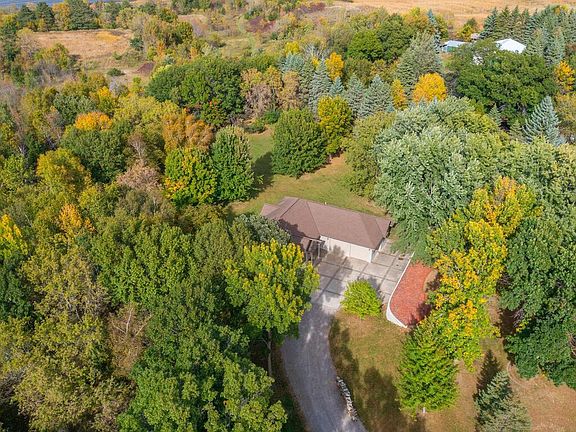 This stunning walkout Rambler is nestled on a peaceful 3.68-acre heavily wooded lot, offering both privacy and beautiful views of the changing seasons and local wildlife. With 5 Bedrooms, including 3 on the main level, this home is perfect for those looking for extra space. The Primary Suite features a walk-in closet and an ensuite full bath. Attractive newer vinyl plank flooring throughout the main level with ceramic tile in the Foyer, Dining area, Hallway & Full Bath. The Foyer opens into the inviting, vaulted Living Room. The updated Eat-in Kitchen boasts granite countertops, a tile backsplash, new light fixtures, updated sink/fixture, and cabinet hardware, creating a stylish and functional space for cooking and dining. Just outside, the deck overlooks the wooded backyard, offering an excellent space for outdoor entertaining. The lower level features a large, tiled Family Room with a corner gas fireplace and a Wet Bar area, ideal for relaxation or hosting guests. This level also includes 2 additional bedrooms, an updated ¾ Bath, and a large Laundry Room. Great storage throughout the home and the insulated garage. Additional storage can be found in the two outbuildings on the property. The attractive concrete driveway includes extra parking for an RV, located next to the nice retaining wall. Recent updates include a high-efficiency furnace and AC installed in September 2024, ensuring year-round comfort and energy efficiency. With its serene setting, updated features, and spacious layout, this home offers a perfect blend of modern living and natural beauty. Walk your personal trail through mature trees, sumac, and along ponds and enjoy the wildlife. A little over 3 times around provides a beautiful mile walk. 2 miles to downtown Cold Spring with water park & theater & only 15 minutes from St. Cloud. Within 1 hour of NW Metro.