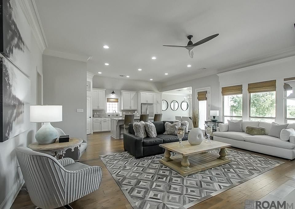 Welcome to this Custom Built, One Owner, 4 Bed and 3 Bath, exquisitely maintained home, Over 2,400s.f. of luxury in Woodridge Subdivision - New Roof April 2022 - This North Facing home offers a refined open-concept floor plan with soaring 11' ceilings, triple crown molding, wood floors, and designer fixtures throughout - The chef’s kitchen is a showstopper—featuring a massive island, gas cooktop, large walk in butlers pantry in addition to primary pantry, and double-stacked custom cabinetry - The large living room boasts a gas fireplace, built-ins, and tons of space - All surface areas wrapped in quartz or granite - All four bedrooms are spacious with walk-in closets - The private primary suite includes a luxurious en-suite bath with soaking tub, tiled shower and stone-topped vanities - Built in his and hers wardrobes (18 drawer) covered in quartz - Whole house water filtration system - Two HVAC Units - Step outside to your backyard retreat with amazing views - Located in a vibrant, community-focused neighborhood known for holiday events, and friendly neighbors. This home blends comfort, style, and convenience in one of Baton Rouge’s most desirable areas. Schedule your private showing today - Measurements and acreage are not warranted by the Realtor