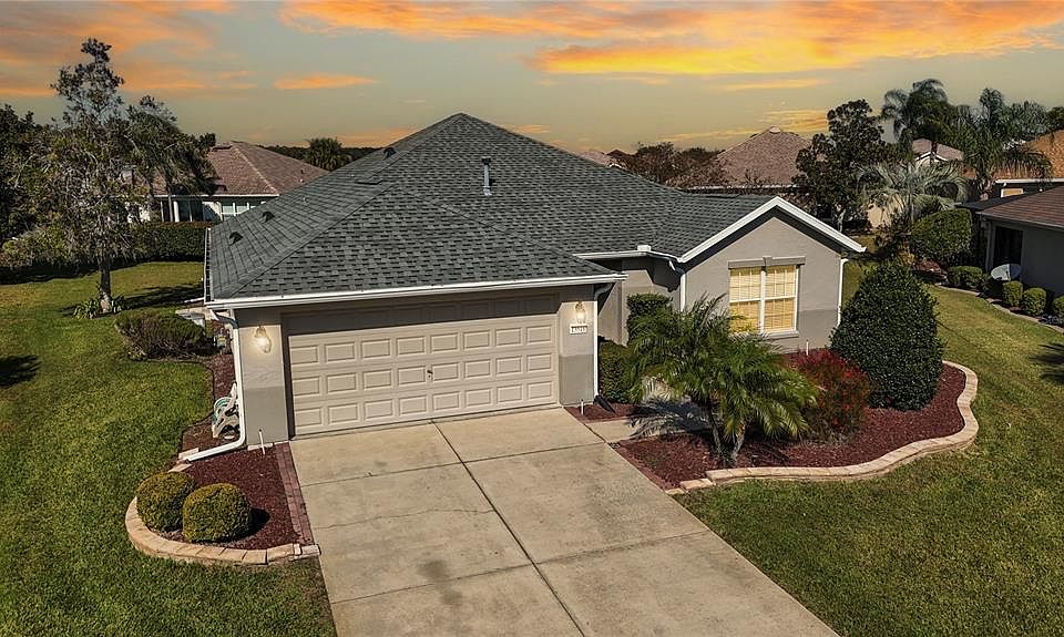 Time to make this house your HOME. Citation Floor plan located in the Echo Glen area of the prestige gated 55+ community of Del Webb Spruce Creek Golf and Country Club. Discover comfort, convenience, and an exceptional lifestyle this home has to give a new owner!. Thoughtfully designed and move-in ready, this home offers 2 bedrooms with a split floor plan, a versatile Library/den with elegant French doors, and 2 full bathrooms, catering effortlessly to both relaxation and everyday living. Step inside through the designer door with side window to be greeted by soaring volume ceilings that enhance the home’s spacious, open layout. Abundant natural light fills the living areas, creating a warm and inviting atmosphere. The well-appointed kitchen features a breakfast bar and an adjoining dining area—ideal for casual dining or entertaining friends and family. Kitchen highlights beveled edge counter tops, cabinets with custom pull outs, upgraded stainless steel appliances, recessed lighting, and closet pantry. The generous primary suite provides a peaceful retreat with its en-suite bath, complete with a step-in shower, dual vanities, and a large walk-in closet. A secondary bedroom and full bath provides comfort and privacy for guests. Enjoy Florida living year-round in the enclosed lanai, or relax outdoors on the concrete patio, surrounded by maintained landscaping including Hacienda walls that enhances the home’s curb appeal. Added features are Phantom Screen on the front door Additional conveniences include an inside laundry room and an attached extended two-car garage with cabinetry for ample storage. Home has been re-piped, Architectural Shingles (2017), Newer HVAC (Aug 2025), Hot Water Tank (2024), Appliances (2024), Washer/Dryer (2025). This home has a lot going for it !