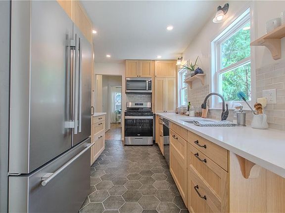 Large fenced yardScreened-in porchSleek cabinetryIkea-designed kitchenAll-new windowsGleaming wood floorsFresh landscaping