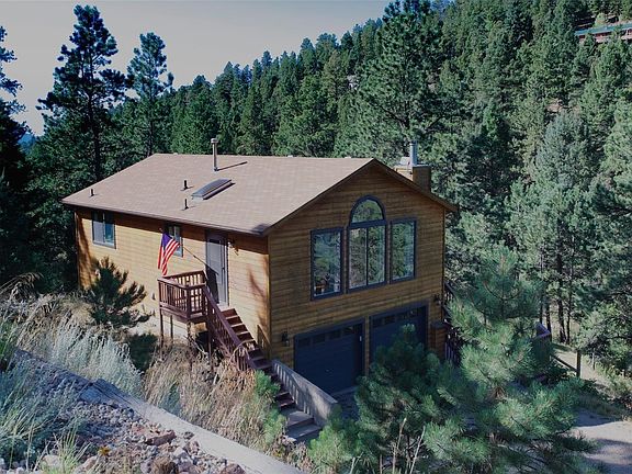 Extraordinary Pikes Peak Views and a stream runs through it! What could be better....an affordable home, quiet neighborhood, a 3 bedroom (depends on how you use the downstairs bonus/family room area), a two car attached/tuck under garage, tons of decking, a workable yard for kids, both a wood stove and a furnace, the electric hookup for the hot tub is already installed, a work bench in your garage with an extra refrigerator! Eight minutes to highway 285 with an exit ramp just for Richmond Hill Road residents (and right before the traffic bottles up headed into the mountains). A hidden jewel with great views and a great location and neighborhood! Also great truly high speed internet and natural gas!!!! Less than 15 minutes to the grocery stores and 45 minutes to DTC.