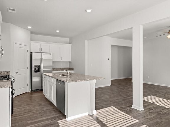 Floor Plan: Step into the popular 4-bedroom Somerset model, designed for modern living. This spacious layout features an open-concept kitchen with a large center island, gray cabinetry with stylish hardware, and updated appliances throughout. The home sits on a fully landscaped lot with an irrigation system to keep your yard looking its best all year long.