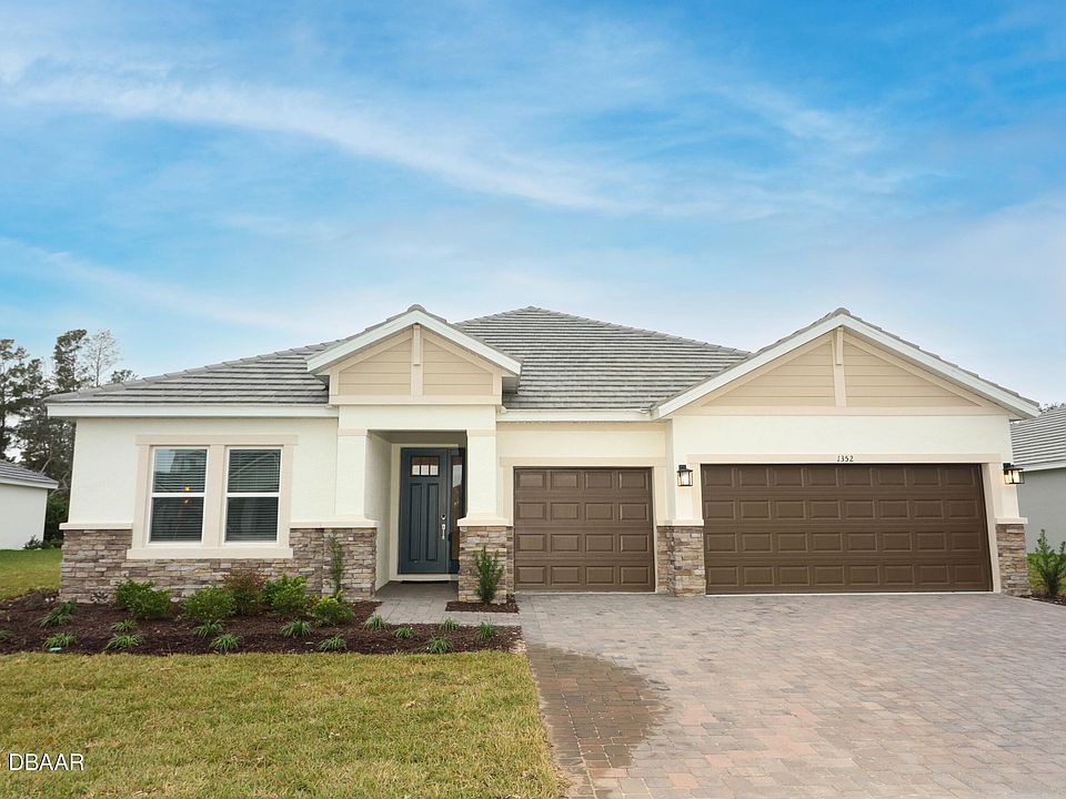 MLS#1111939 REPRESENTATIVE PHOTOS ADDED November Completion! The Java is a flexible home design that fits a variety of needs. Featuring a 3-way split plan centered around an open-concept kitchen and gathering room. The 3 secondary beds are located towards the front of the home. The primary suite is privately situated in the back corner of the home and includes a spa-like bathroom with separate soaking tub and shower. The massive gathering room can comfortably host a large party and over-sized sliding glass doors lead out to a lanai for the best of indoor/outdoor Florida living. Structural options include: Tray ceiling, gourmet kitchen, 8ft doors, pre plumb for pot filler, pre plumb for outdoor kitchen, and rain shower in owners.