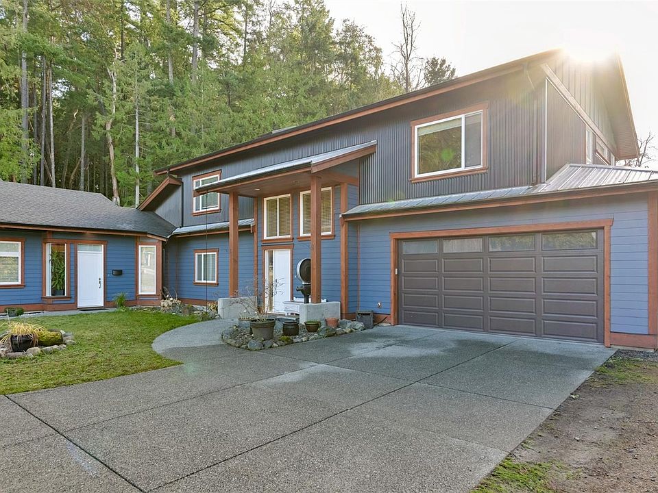 Welcome to 1352 Ball Rd — a custom-built showpiece offering close to 3,500 sq ft of beautifully designed living space on 1.22 acres of private, park-like land in sought-after Cobble Hill. Built in 2011, this exceptional home blends modern design with warmth and functionality. The main home features 3 bedrooms, an office/den, and a recreation room (or up to 5 bedrooms total), highlighted by 18 ft ceilings, expansive windows, hardwood and polished concrete floors, and in-floor natural gas radiant heating. French doors open to a private backyard oasis surrounded by mature landscaping. A self-contained suite offers 1 bed + den (or 2 beds) with a Murphy bed, and both sides include oversized garages. A good sized workshop adds endless possibilities. A rare find combining craftsmanship, space, and serenity in the Cowichan Valley.