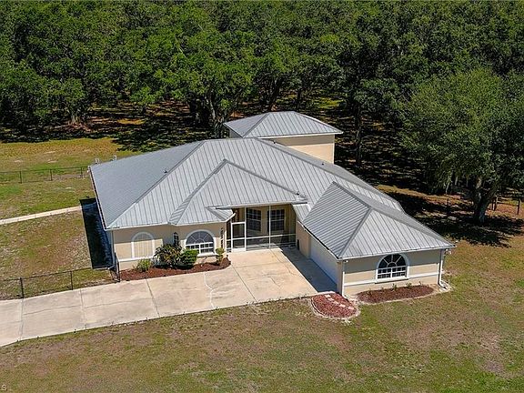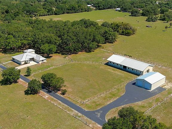 Horse property with over 24 acres, metal storage barn, 12 stall horse barn and spacious 2 story home! You will not find a better equestrian property for the money in SW Florida, plenty of grass pasture, horse fencing, private gated entry, house sets way back on lot! Plenty of paved parking for vehicles, RV and horse trailers, storage building great for farm equipment or business equipment-supplies, round pen. The horse barn was custom built and ready to go, wash stall, feed room, tack room, wide center aisle with easy mats, roll down main doors, soft stall floor mats, bring the horses and ride. Home shows beautifully, with plenty of space and room for everyone, 2 car garage, painted 2020, metal roof, Generac generator, new AC 2018. Generous lanai and a great floorplan with quality amenities and features. Expansive rear lanai with views of the yads and woods. Plenty of area back of house-lot to build a guest house too. You can get to the Caloosahatchee River for boating, Lee County Park for horseback riding trails, Ft Myers or Labelle for dinner, shopping and more.