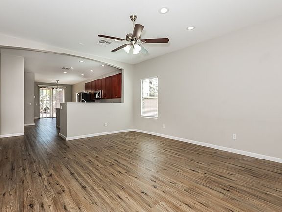 Check out this gem of a rental home in Gilbert, AZ. The move-in ready home offers three bedrooms, two bathrooms, and numerous amenities. You'll enjoy ample space in the living room thanks to the open floor plan and high ceiling. Appreciate the low-maintenance vinyl plank flooring, recessed lighting, and lighted ceiling fan. The eat-in kitchen offers features such as stainless steel appliances, granite countertops, and a kitchen island. Relax in the spacious main bedroom with a backyard view and a lighted ceiling fan. A walk-in closet and an en suite bathroom with dual vanity sinks offer convenience. The home also has a two-car garage and a covered patio in the backyard. Call today to set up a private showing.