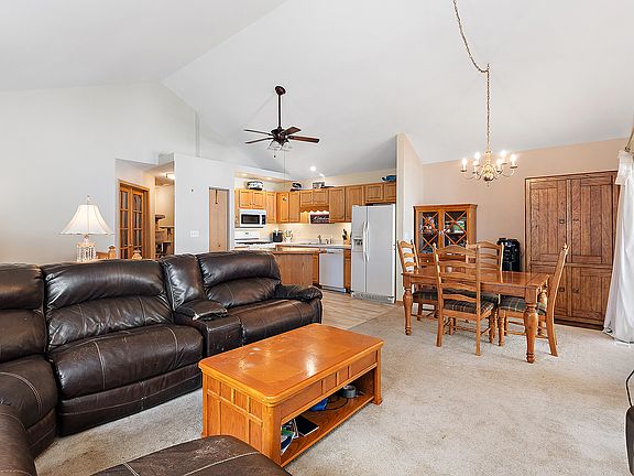 Don't miss this 2-story townhome that features 3 bedrooms and 2 full baths. Builder made some custom modifications and thoughtful upgrades that create an expansive, open-concept floor plan filled with natural light. Step inside to discover vaulted ceilings, painted in soft neutral tones. The spacious living and dining areas flow seamlessly into the fully applianced kitchen with ceiling fan and room for an island. Dining area opens to a private balcony-perfect for relaxing or entertaining. The primary suite offers a walk-in closet and direct access to the main full bath, complete with double sinks. A set of French doors welcomes you into the second main-level bedroom, where the washer and dryer are conveniently located in the closet. The entry foyer includes a coat closet and multiple additional storage options throughout the home. The lower level impresses with a spacious second primary suite, large enough to accommodate a den area, and another full bathroom. The two-car attached garage is fully drywalled. Enjoy maintenance-free living- exterior maintenance (roof, driveway, painting) & lawn maintenance/snow removal is covered by monthly HOA assessments. Feels like a single family home. Hurry!
